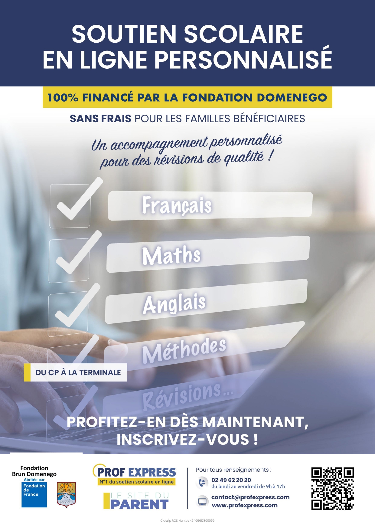 Les enseignants Prof Express, certifiés de l’Éducation nationale, sont disponibles pour les aider à tout moment de l’année.